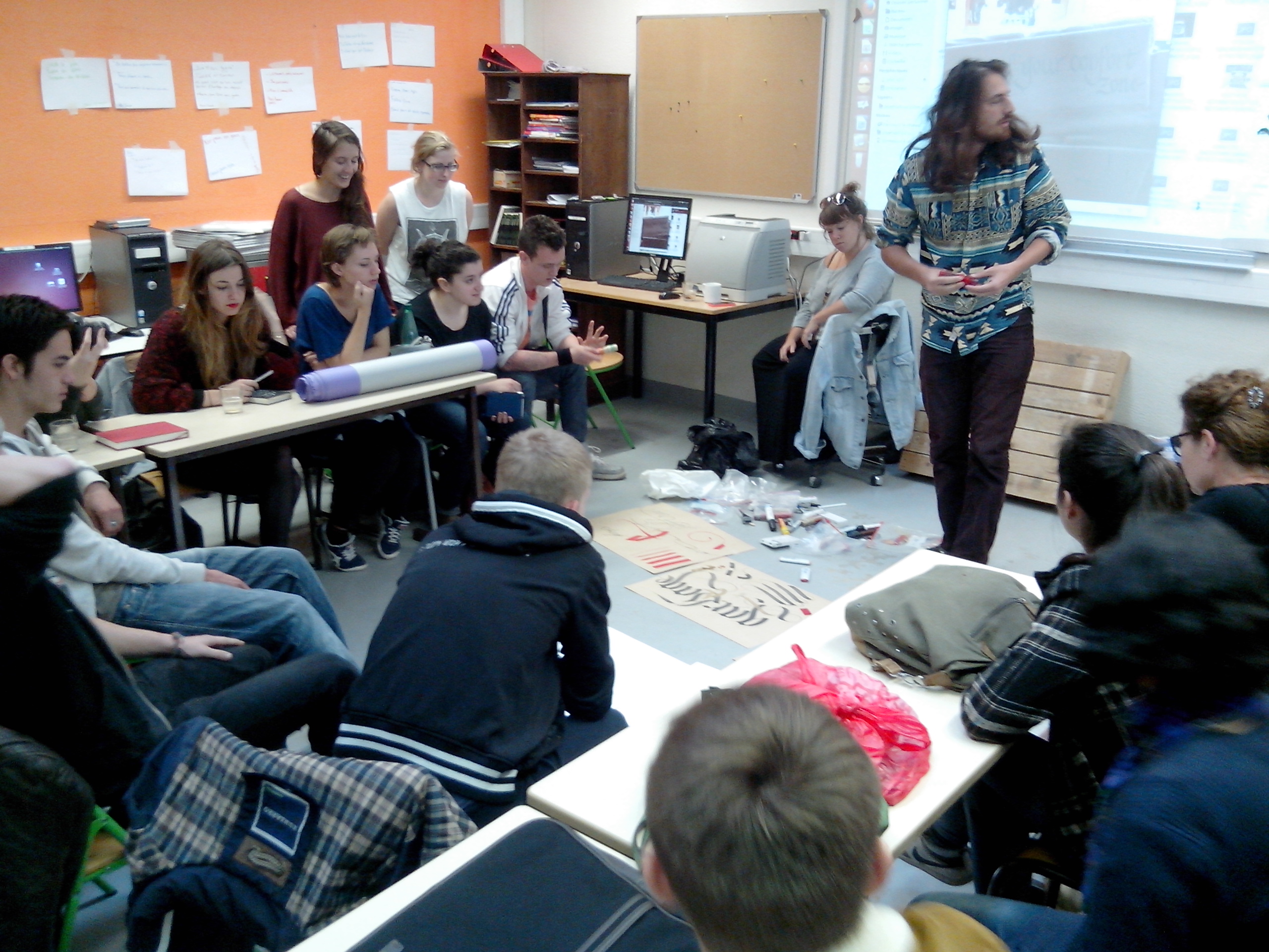 Nous avons visité la salle d’exposition à la mairie et fait la rencontre des artistes ( Vincent & romain ) et des élèves de l’école Estienne.