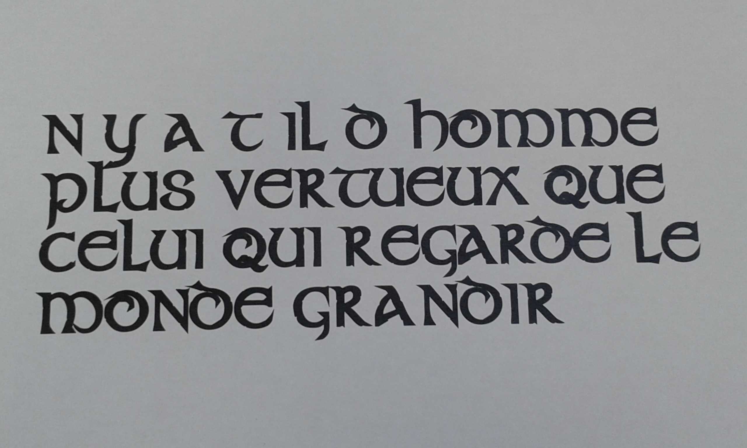 Le pochoir consiste à illustrer d’un motif une feuille ou un support afin de pouvoir le reproduire sur un objet, un textile, une façade etc..Ici le but de nos pochoirs était de pouvoir reproduire une devise avec un type de police spécifique et pas forcement facile à reproduire. Les phrases «décrivent» en quelques mots une personne. Ici, nous avons pris une feuille de format A4 et nous avons imprimé des phrases avec une certaine police, celle de son choix. On recouvre de scotch la face recto et verso de la feuille pour pouvoir par la suite découper les lettres au cutter.